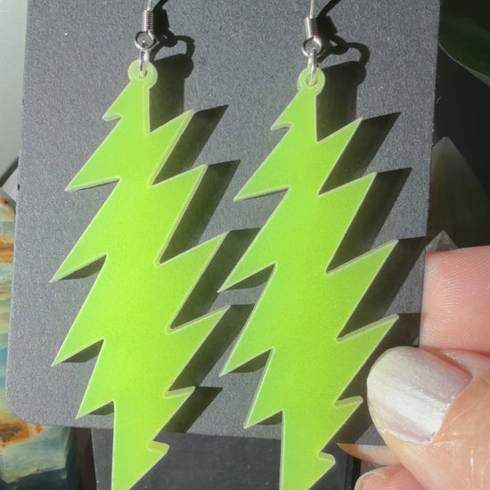 China Cat Glow in the Dark | Grateful Dead 13-Bolt Earrings | neon glow in the dark yellow green