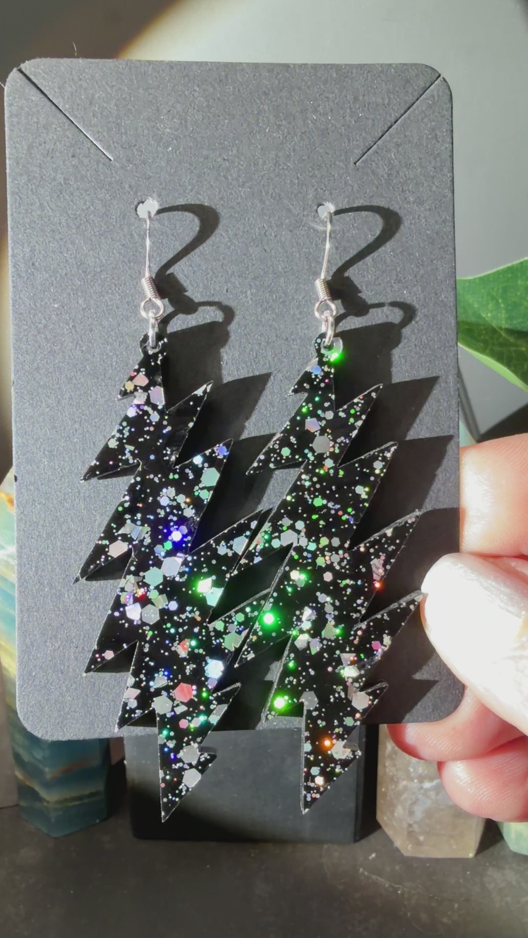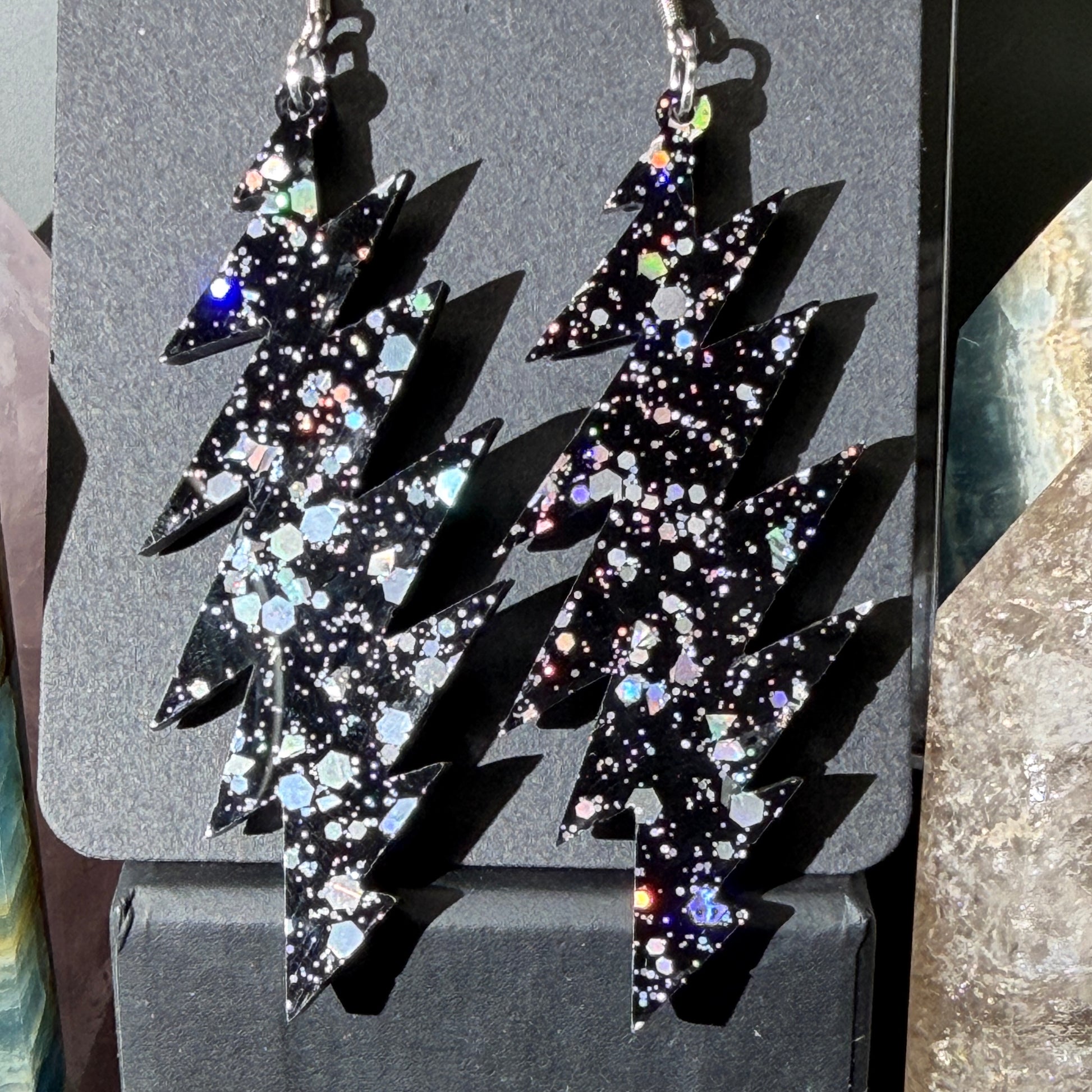Love this style but want another size bolt or shape? This glitter acrylic can be made into any size or shape you want! I laser cut everything myself in my home studio in Baltimore, MD USA. I can make you a sparkly pair of earrings you have your heart set on and turn-around is quick. Message me to chat about what you’re looking for!