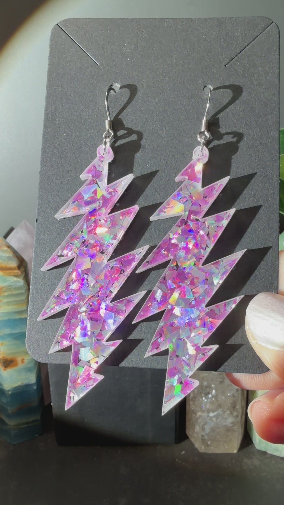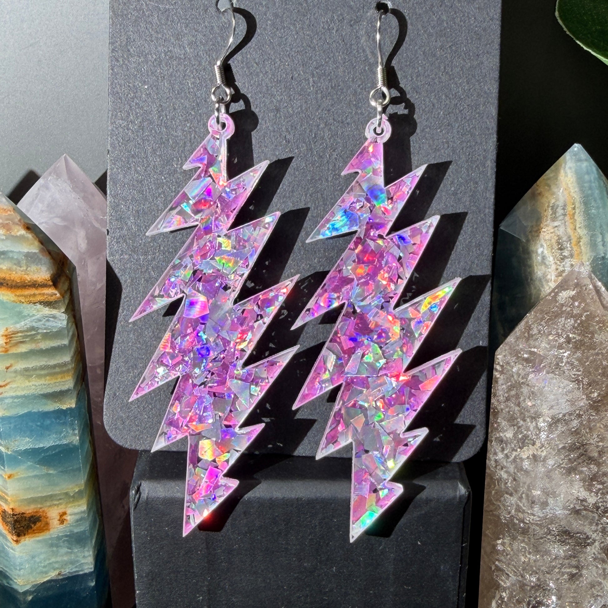 Love this style but want another size bolt or shape? This glitter acrylic can be made into any size or shape you want! I laser cut everything myself in my home studio in Baltimore, MD USA. I can make you a sparkly pair of earrings you have your heart set on and turn-around is quick. Message me to chat about what you’re looking for!