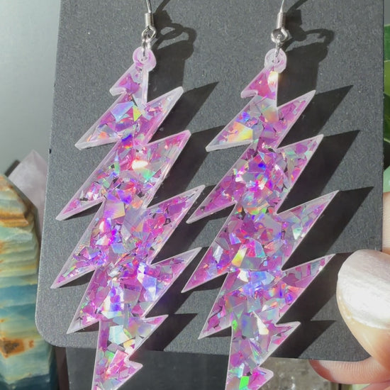 Franklin's Tower Glitter | Grateful Dead 13-Bolt Earrings | pink silver holographic sparkle
