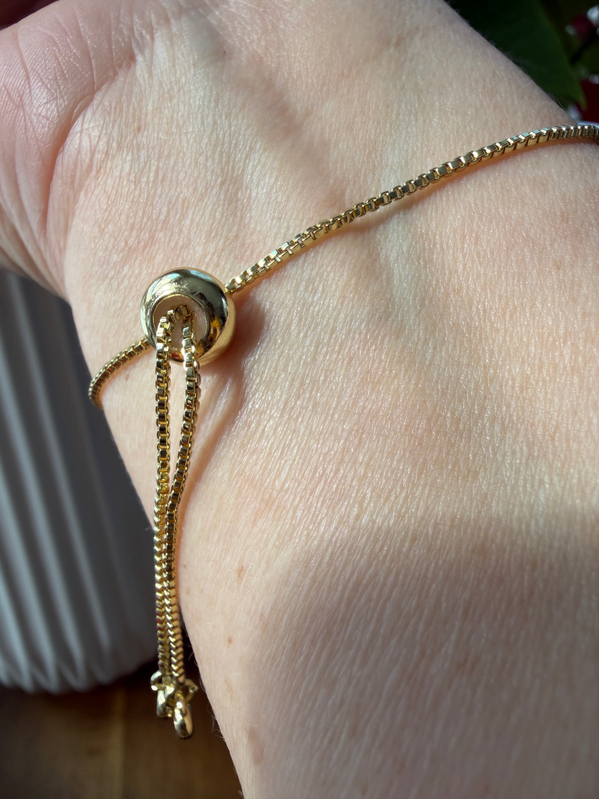 • Gold Box Chain: A polished look featuring a gold-toned box chain and an adjustable slider bead for a perfect, custom fit.