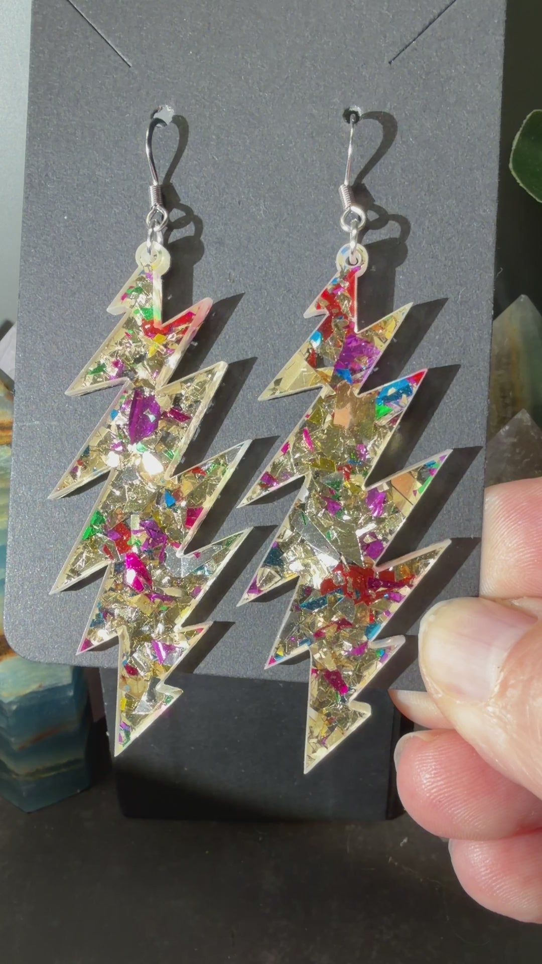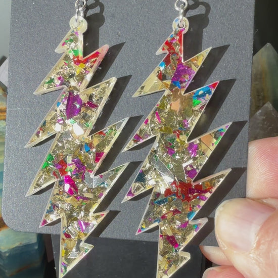 Love this style but want another size bolt or shape? This glitter acrylic can be made into any size or shape you want! I laser cut everything myself in my home studio in Baltimore, MD USA. I can make you a sparkly pair of earrings you have your heart set on and turn-around is quick. Message me to chat about what you’re looking for!