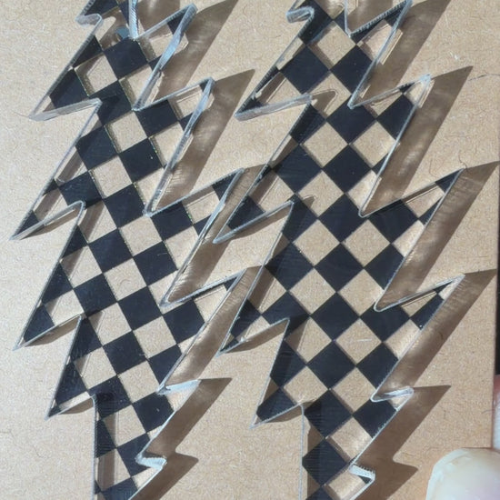 Black and clear checkered pattern, these Grateful Dead-inspired earrings will have you shining brighter than the disco ball from the band's 1974 run at San Francisco's Winterland Ballroom.