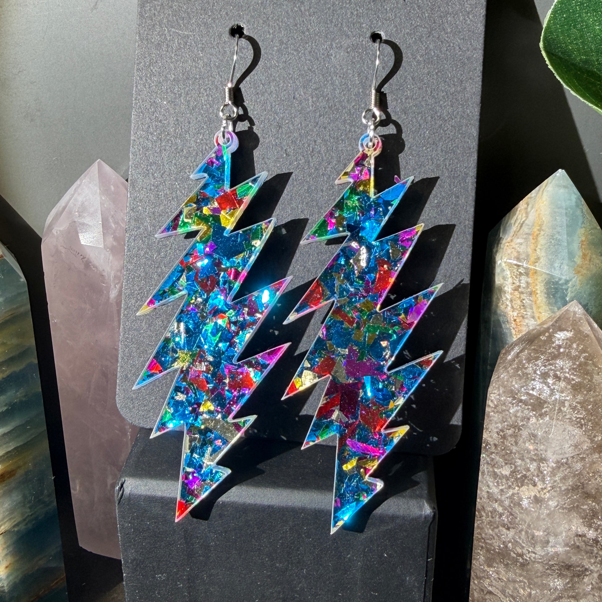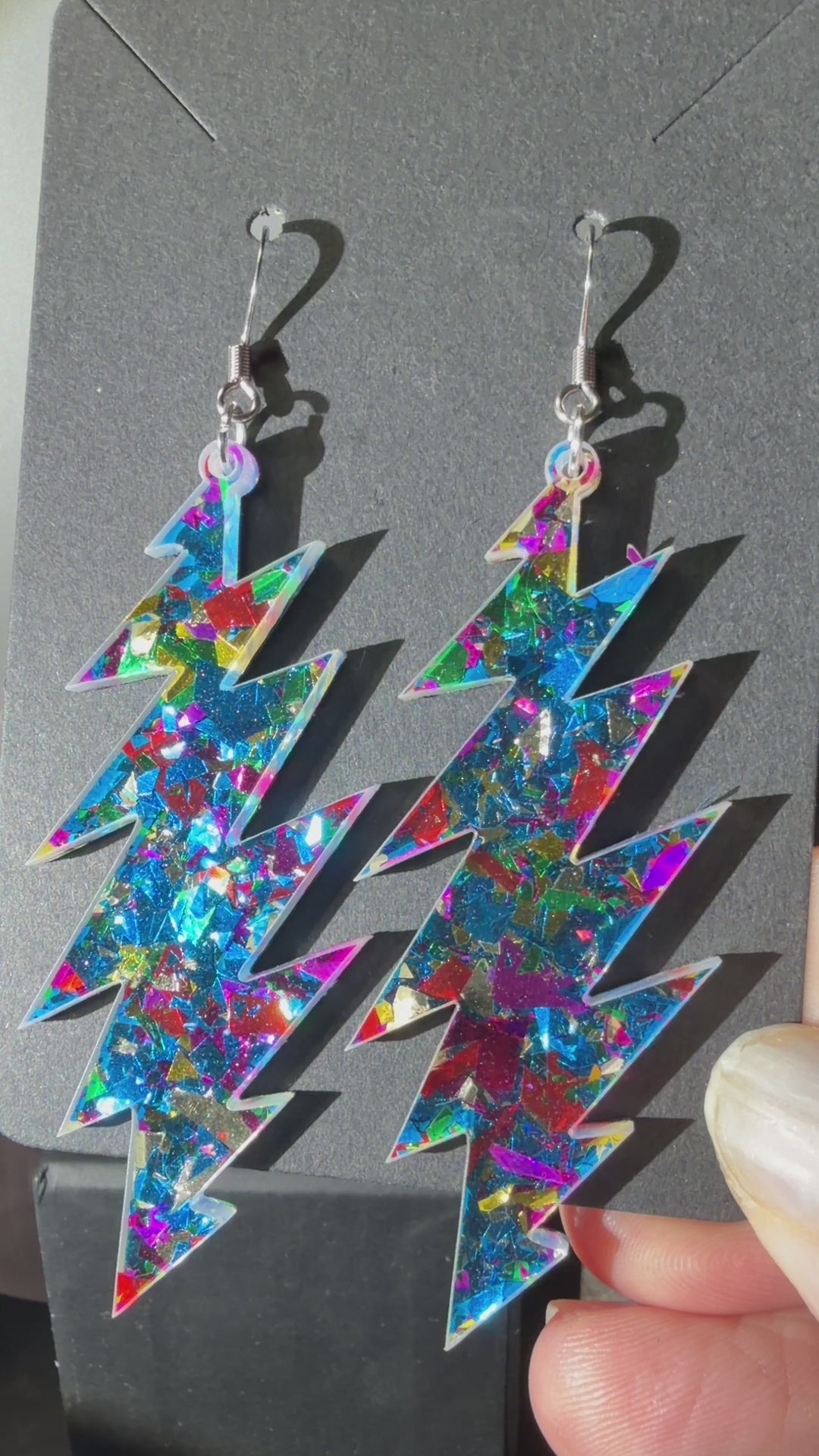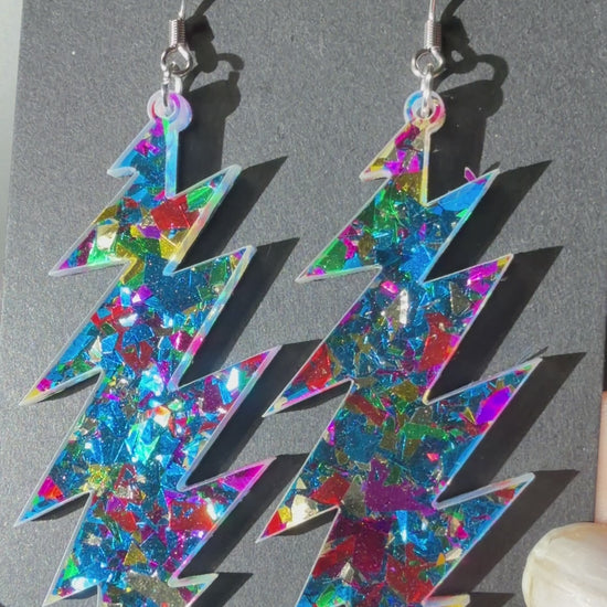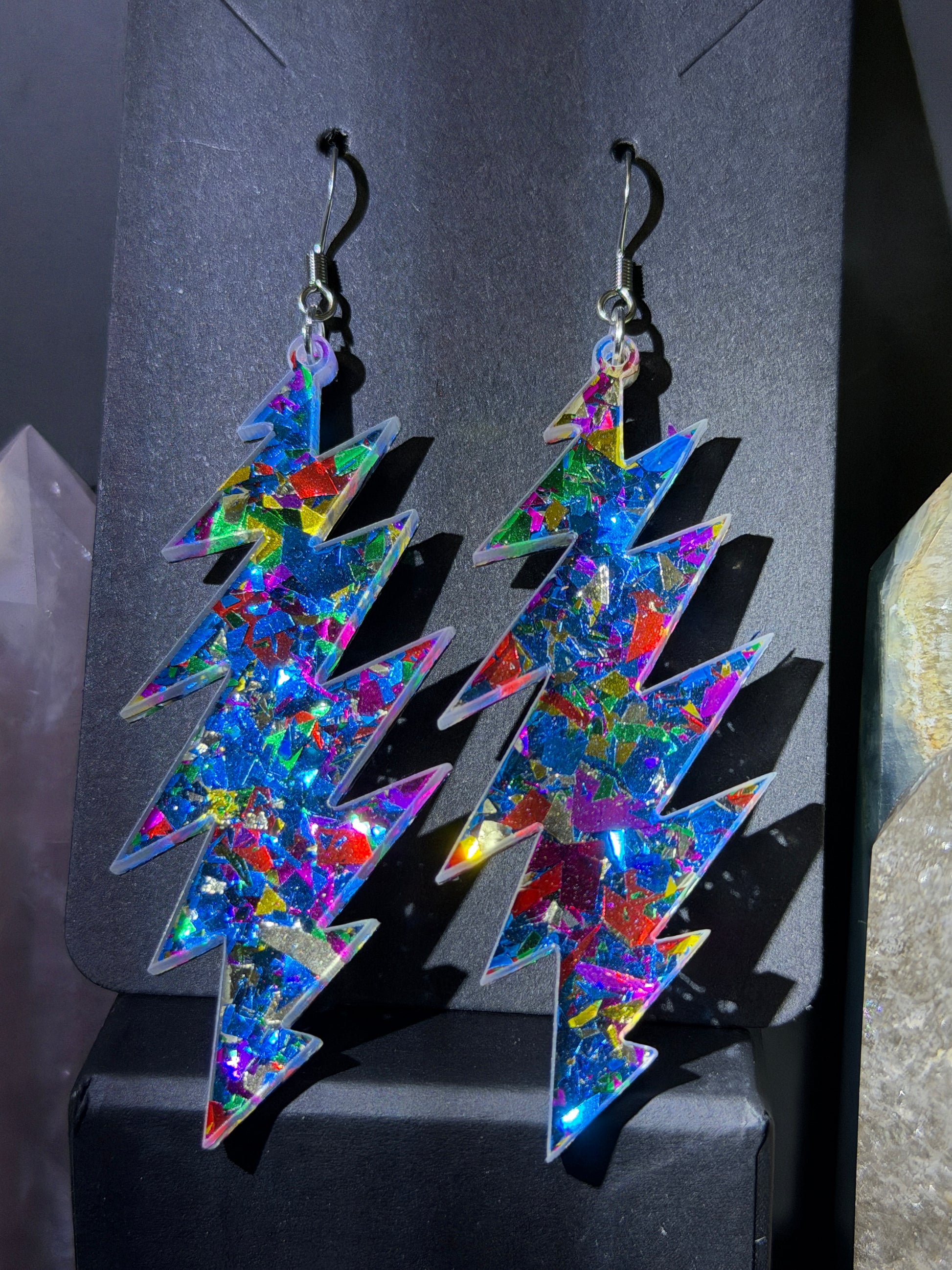 Love this style but want another size bolt or shape? This glitter acrylic can be made into any size or shape you want! I laser cut everything myself in my home studio in Baltimore, MD USA. I can make you a sparkly pair of earrings you have your heart set on and turn-around is quick. Message me to chat about what you’re looking for!