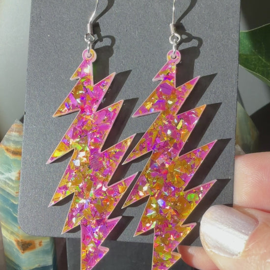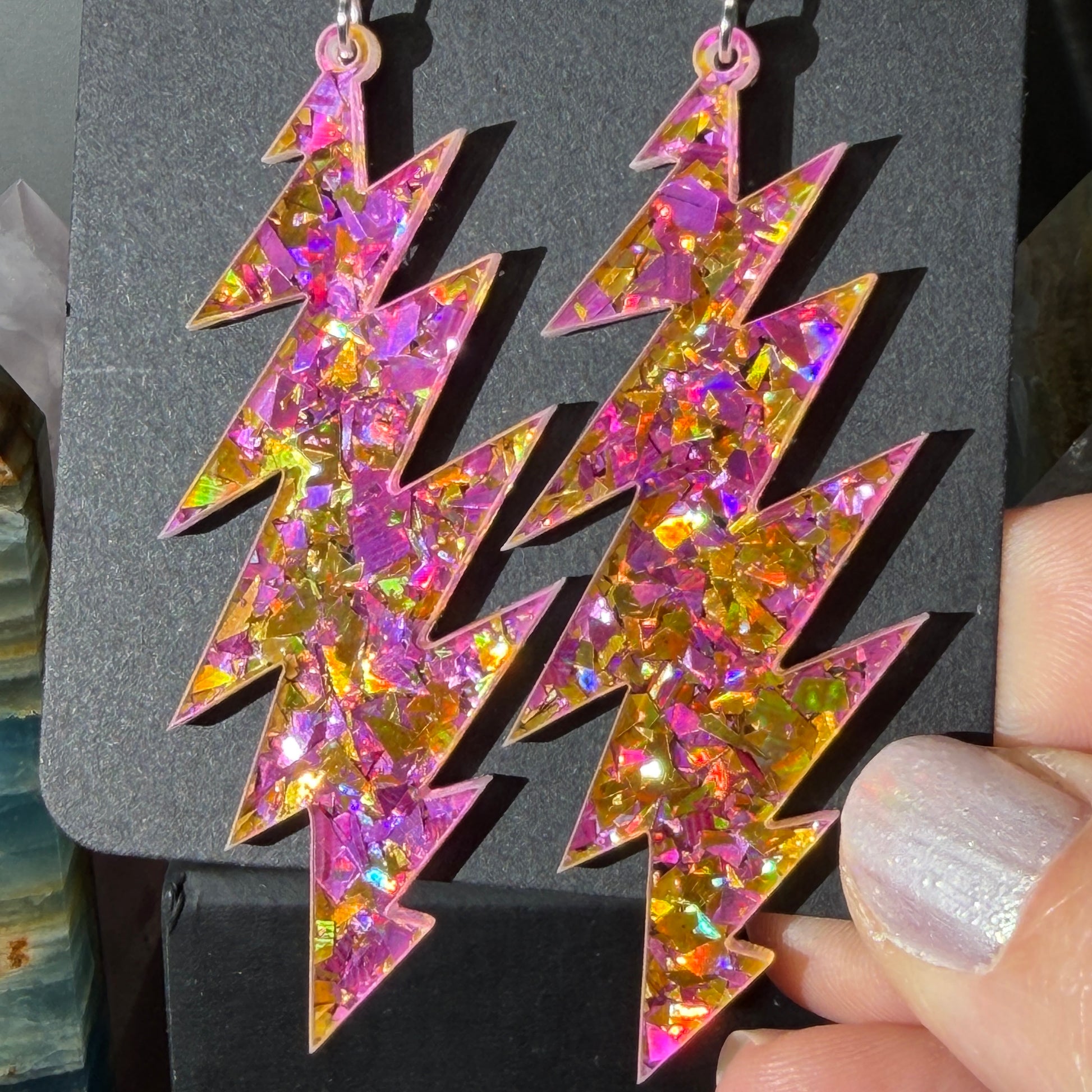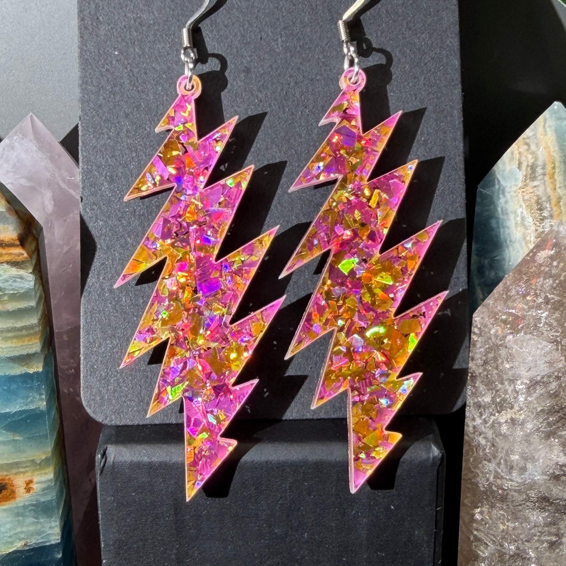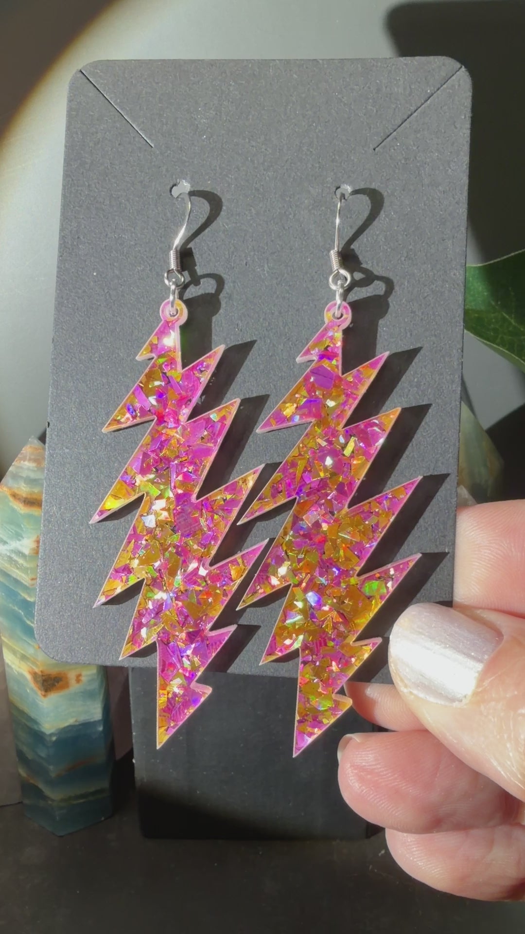 Love this style but want another size bolt or shape? This glitter acrylic can be made into any size or shape you want! I laser cut everything myself in my home studio in Baltimore, MD USA. I can make you a sparkly pair of earrings you have your heart set on and turn-around is quick. Message me to chat about what you’re looking for!
